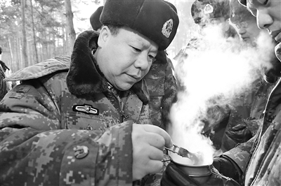 上图:绳以健赴边防一线部队试验单兵炊具的加热性能。