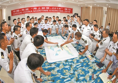 此次联演分港岸活动、海上演练和演习总结3个阶段进行。演习期间,来自中国与东盟10国的8艘舰艇、5名观察员、1200余名官兵,圆满完成编队离港、编队通信、编队运动、联合搜救、直升机甲板互降及补给机动占位6个课目的海上实兵演练。此外,参演各方还开展军事医学与潜水作业等课题研讨,观摩营救落水人员训练,组织战术桌面推演,并举行了舰艇开放及文体交流活动。