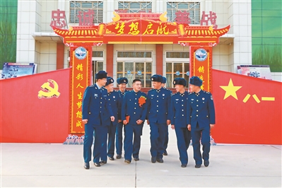 11月29日,空军西安飞行学院某旅举行士兵退役仪式暨表彰大会,表彰老兵为部队建设作出的贡献。图为表彰大会结束后,战友为退伍老兵送上祝福。 崔保亮摄