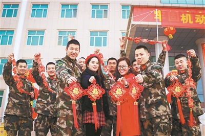 上图:武警新疆总队机动某支队来队家属与官兵一起装点营区,营造节日氛围。张 剑摄
