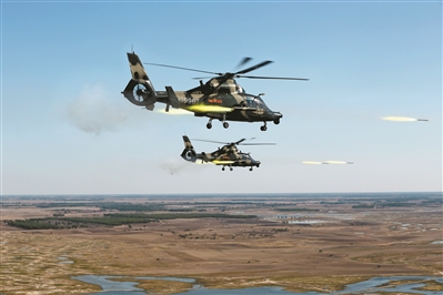 五月上旬,中部战区陆军某陆航旅数十架直升机飞赴某综合训练场,展开多弹种、全天候、高强度实弹射击训练。余 磊摄