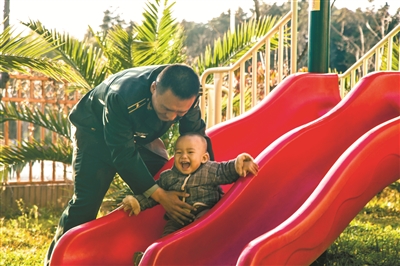 “这是单位移防后我儿子第一次来部队过年。现在家属区里建起了儿童游乐园,可把这小子高兴坏了。”胡义军感慨地说,早就答应过带儿子去儿童游乐园,可一直没时间,如今在营区里就能让孩子如愿以偿。