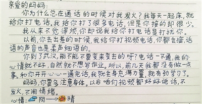 你到了武汉,能不能不要变来变去的呀?电话一不通,我的心情就不好,自然就不想写作业。所以,前几天我都没有做一点事。和你开开心心一通完话,我就全身充满力量,就有劲学习了。