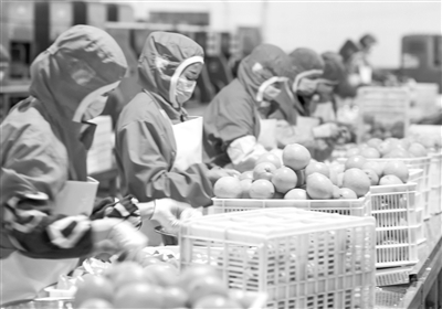 近日,湖北省宜昌市秭归县脐橙加工企业在做好疫情防控工作前提下,有序组织员工复工。为了帮助柑农增收,秭归县推行“农企对接”销售模式,让柑农将脐橙直接销售给当地企业。企业加紧进行脐橙深加工,制成脐橙茶、脐橙酒等产品,帮助农民实现增收。图为3月19日,秭归脐橙深加工企业的工人在生产线上忙碌。