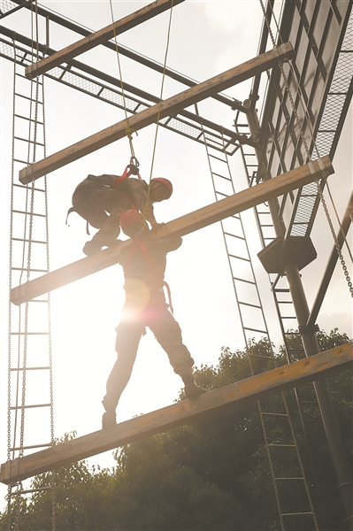 6月9日,第72集团军某旅开展高空心理行为训练,锤炼官兵过硬的心理素质。 彭先华摄