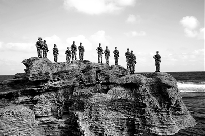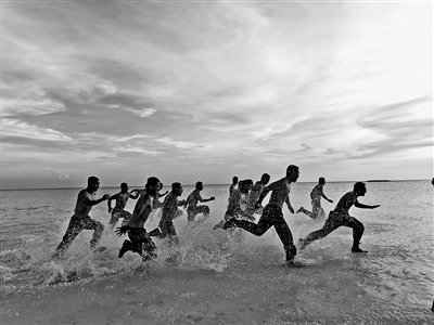 图①:激情。盛夏,夕阳中,琛航岛官兵在海边训练,炙热的激情一瞬间迸发。