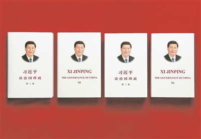 上图:中央宣传部(国务院新闻办公室)会同中央党史和文献研究院、中国外文局编辑的《习近平谈治国理政》第三卷,近日由外文出版社以中英文版出版,面向海内外发行。