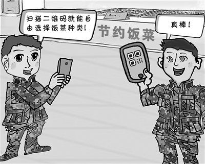 那么,该如何及时了解官兵胃口?除了问卷调查这种传统方法之外,有没有更具时代性的好办法?几经征询,一条建议得到官兵“点赞”——借鉴地方酒店的做法,将食材制成二维码,让官兵周末发手机时扫码点餐。