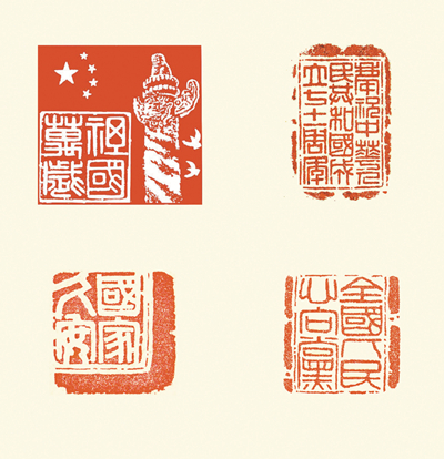 篆刻:祖国万岁、庆祝中华人民共和国成立71周年国家久安、国家久安、全国人民心向党 张桂绒 胡三银作