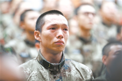 12月2日,郑州联勤保障中心某新兵营举行授衔仪式,新战士佩戴上心仪已久的军衔,不少人流下了激动的泪水,纷纷表示一定努力训练,争做优秀士兵。徐野东摄