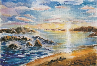 霞光满天(水彩画)褚 雁作
