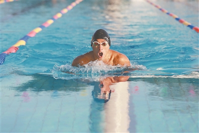 近日,南部战区陆军某部举办首届军事体育运动会。运动会设田径、游泳、射击等项目,共600余名军体健儿同场竞技。图为该部战士窦智军在100米蛙泳比赛中。张正举摄