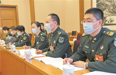 3月5日下午,解放军和武警部队代表团分组审议政府工作报告。 本报记者 冯凯旋摄