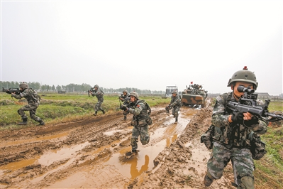 近日,第72集团军某旅组织开展进攻与防御战斗红蓝对抗演练,通过构设贴近实战的环境条件,检验提升官兵的战术执行能力。图①:蓝方利用障碍物阻击红方先头分队。图②:红方分队向纵深发起进攻。
