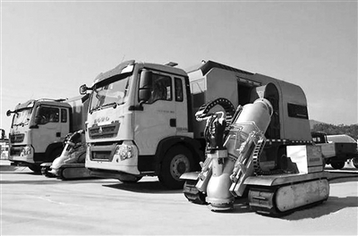 “龙吸水”应急排水抢险车分子母式、垂直式、斜插式等类型。该车只需3人就能在10分钟内架设完毕,仅用一台手持式遥控器就可操纵。