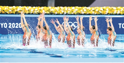 8月7日,东京奥运会花样游泳集体自由自选决赛举行。在6日进行的花样游泳集体技术自选比赛中,中国队展现的主题为《追梦》,最终拿到了96.2310分,落后俄罗斯花样游泳队排名第二。今天,中国姑娘压轴出场,表演的《巾帼英雄》以恢宏气势拿到97.3000分,总分193.5310分获得银牌。俄罗斯花样游泳队以196.0979分拿到金牌,这也是她们在奥运会该项目上的5连冠。乌克兰队获得铜牌。