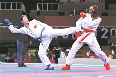 在这个比赛日中,中国军团再迎突破。在皮划艇静水赛场,徐诗晓/孙梦雅夺得女子双人划艇500米金牌,刘浩在男子单人划艇1000米项目中收获银牌。在跳水男子10米台决赛中,中国选手曹缘、杨健包揽冠亚军。谷红夺得女子拳击69公斤级银牌,为中国拳击队收获东京奥运会的首枚奖牌。摔跤赛场,中国选手孙亚楠在女子自由式摔跤50公斤级决赛中收获一枚银牌。花样游泳比赛,中国队获得集体项目银牌。在空手道女子组手61公斤以上级的比拼中,中国选手龚莉(上图)收获一枚铜牌。