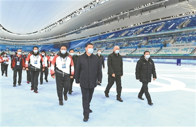 1月4日,习近平在中共中央政治局委员、北京市委书记蔡奇和市长陈吉宁陪同下,深入体育场馆、媒体中心、训练基地等,实地了解筹办备赛情况。