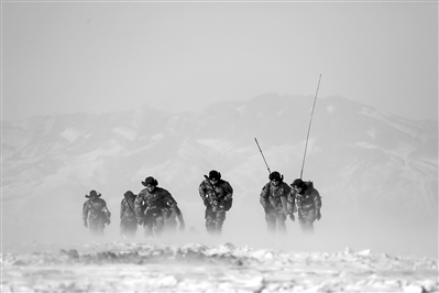 巡逻在山路上,官兵们战风雪、斗严寒,即便狂风阵阵,暴雪袭来,他们也是一路跋涉,勇毅前行。这是因为,他们肩头有使命,心中有责任,脚下有目标。
