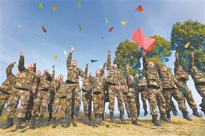 武警重庆总队执勤第三支队一中队组织开展“放飞梦想、新年启航”主题活动,引导官兵在新的一年努力工作、刻苦训练,创造新的更大成绩。图为官兵正在放飞写有个人新年愿望的纸飞机。