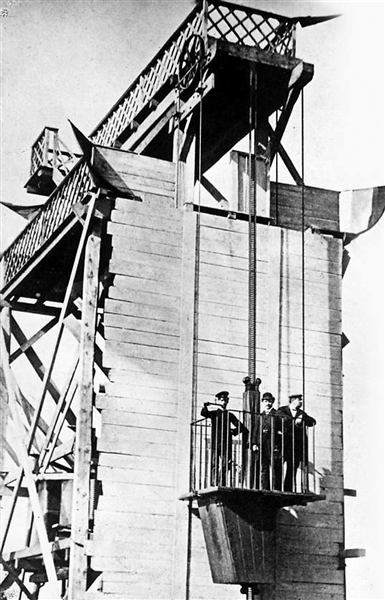 图③:维尔纳发明的第一台电梯。