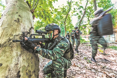 上图:特战队员掩护队友快速突击。杨晓晨摄