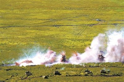 上图:“东方-2022”演习中方参演部队展开实兵实弹合练。