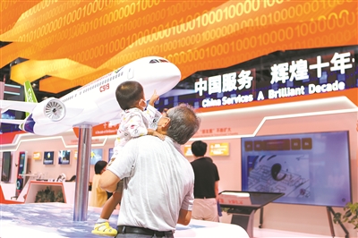 上图:9月5日,观众在服贸会国家会议中心参观中国服务贸易成就展。