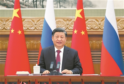 习近平指出,很高兴在岁末之际同普京总统举行视频会晤,这已经成为我们的一个好传统。在我们的共同引领下,中俄新时代全面战略协作伙伴关系更加成熟坚韧,两国合作的内生动力和特殊价值进一步显现。今年前11个月,中俄双边贸易额再创新高,投资合作优化整合,能源合作进一步发挥“压舱石”作用,重点领域合作项目稳步实施。地方合作方兴未艾,人文交流日益密切,体育交流年活动有序开展,双方友好的社会民意基础更加稳固。面对变乱交织的国际形势,中俄双方应该始终坚守合作初心,保持战略定力,加强战略协作,坚持互为发展机遇、互为全球伙伴,努力为两国人民创造更多福祉,为世界注入更多稳定性。