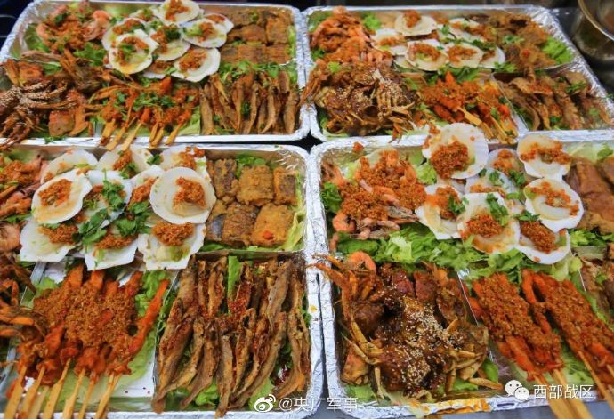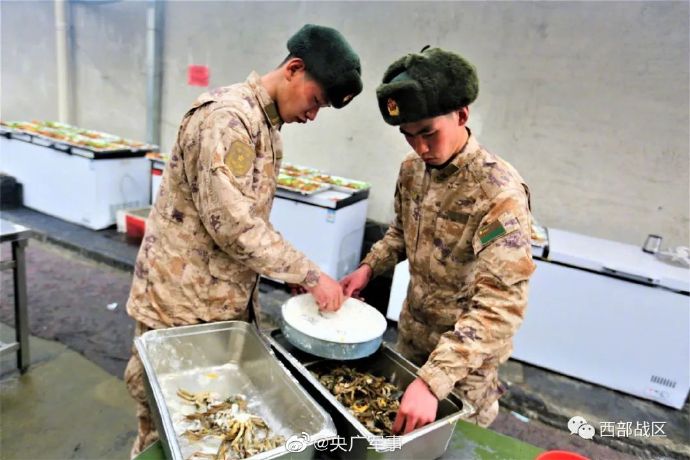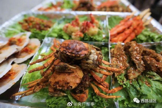 大闸蟹、扇贝、小黄鱼……这是正在高原驻训的陆军第76集团军某合成旅官兵们的周末伙食。