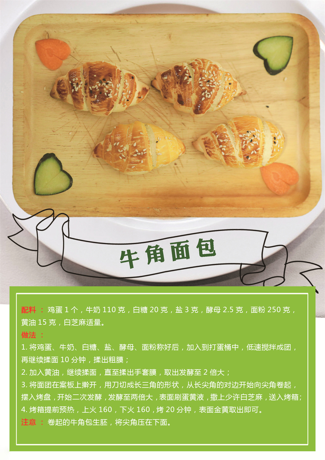 注意:卷起的牛角包生胚,将尖角压在下面。