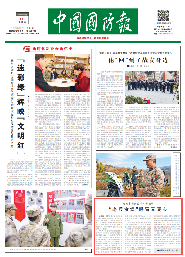 中国国防报讯 丛芳报道:“以前总为做饭发愁,现在吃饭是享受。‘老兵食堂’办到了我们心坎上。”3月25日中午时分,北京市朝阳区军队离休退休干部第十七休养所“老兵食堂”内热气腾腾,74岁的军休干部王守忠和老战友们边吃边聊,其乐融融。
