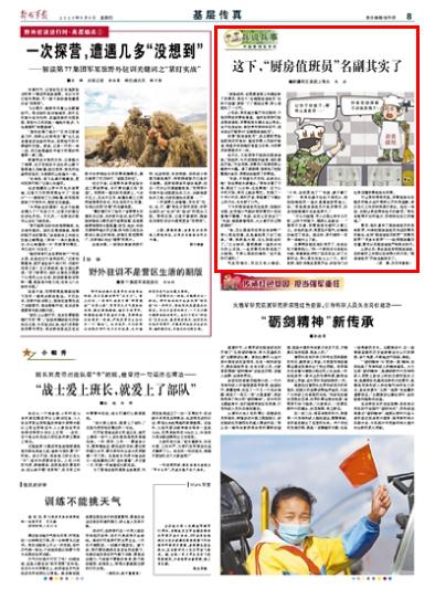 事后,连队重申了厨房值班员的具体职责,叫停把厨房值班员当成炊事员的做法,还将“厨房值班员职责”“炊事员职责”“司务长职责”一一贴到厨房醒目位置,要求以后厨房值班严格照此执行。