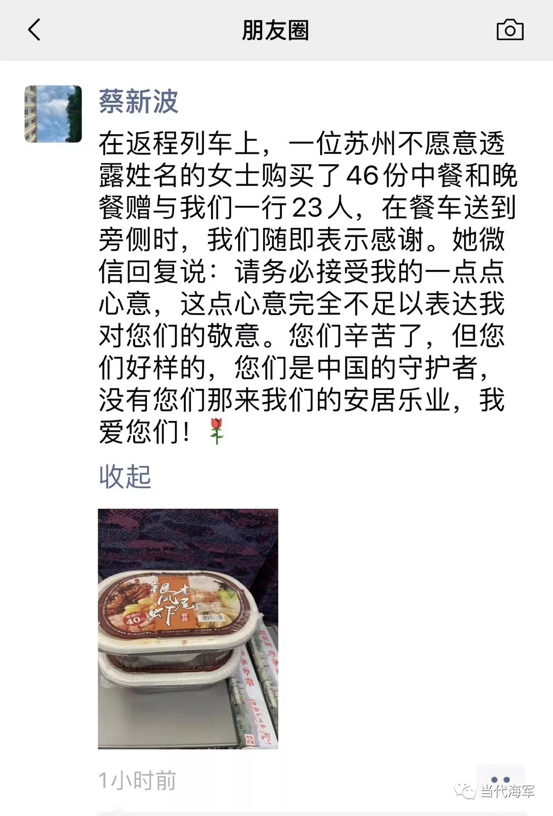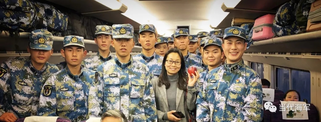 △战士们与兰女士合影丨一名新兵主动提出向兰女士赠送苹果。