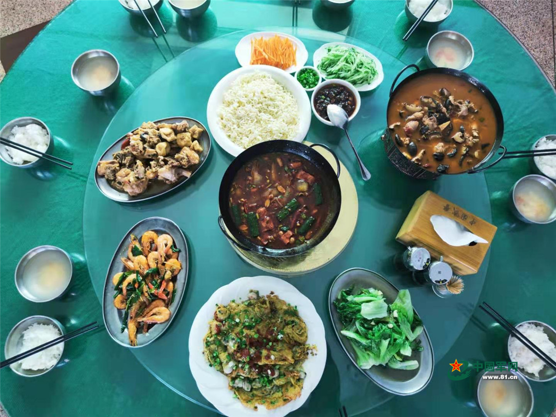 据悉,该单位在严格落实疫情防控要求和伙食管理相关规定的情况下,还围绕着官兵需求合理调剂伙食,并坚持开展“尝尝我的家乡菜”活动,定期收集伙食建议,鼓励每个中队利用近期周末休息时间为官兵们做道家乡菜。此举受到广大官兵欢迎。这不,重庆辣子鸡、陕西凉皮、湖南酱板鸭、广东肠粉、山东海鲜馄饨等特色家乡菜都被写上餐谱,摆上餐桌。