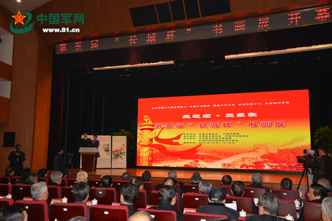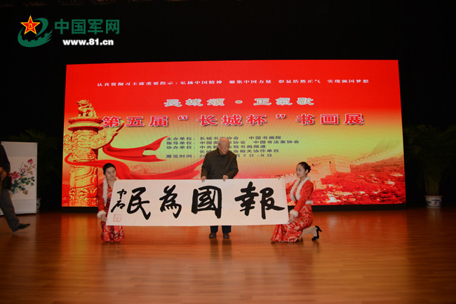 中国军网12月8日电 张跃林报道:翰墨抒情怀,丹青显风采。由长城书画协会、中国书画院主办,以“长城颂·正气歌”为主题的第五届全国“长城杯”书画作品展,12月7日在北京武青会议中心隆重举行。数十位解放军、武警部队老首长、老将军、长城书画协会会长吴双战、书法家欧阳中石等嘉宾出席书画展。