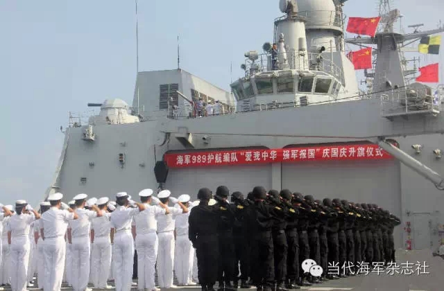 军舰悬挂本国国旗,表示国家的尊严,同时表明军舰的国籍。隆重升旗是停泊的舰艇在规定的节日和逢重大事件时举行的一种盛大庄重的仪式。隆重升旗是指在列队升旗的同时,升挂满旗、桅顶旗和舰艏旗。中国海军规定,在国家法定的节日和海军成立纪念日、舰艇授旗和命名典礼、舰艇海上阅兵时,举行隆重升旗仪式。