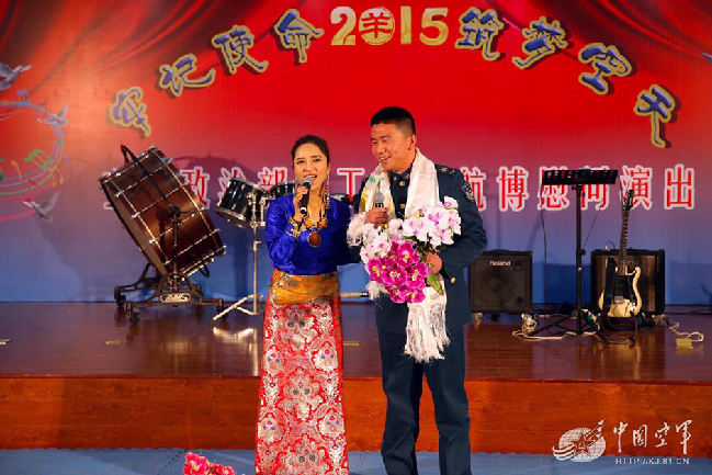 空政青年歌手阿斯根和战友合唱《青藏高原》。