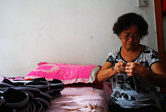 “布鞋奶奶”唐明宪正在纳鞋。图片来源:中国文明网·四川站