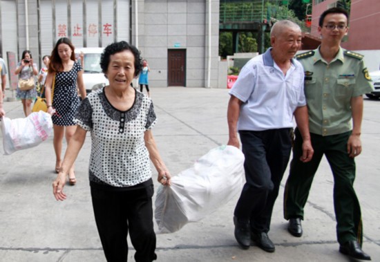 唐明宪夫妇及社区工作人员提着鞋袋前往攀枝花消防支队。图片来源:中国文明网·四川站