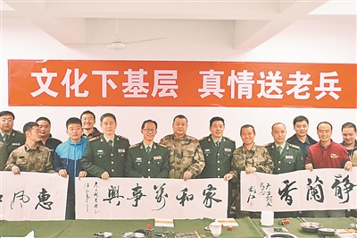 丹青送基层,温暖老兵心。今年老兵复退工作开展以后,防化学院多措并举为复退老兵办实事、做好事。图为该院组织部分书画家为复退老兵作画抒情、献字励志。徐照祎摄
