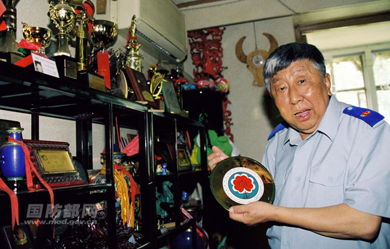2010年6月,阎肃在空政文工团家中客厅讲述奖杯背后的故事。郭幸福摄