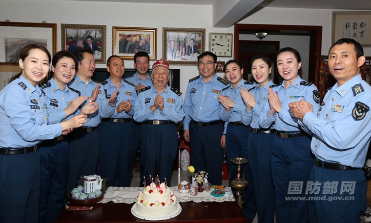 2015年5月9日,空政文工团团员为阎老祝贺生日。郭幸福摄