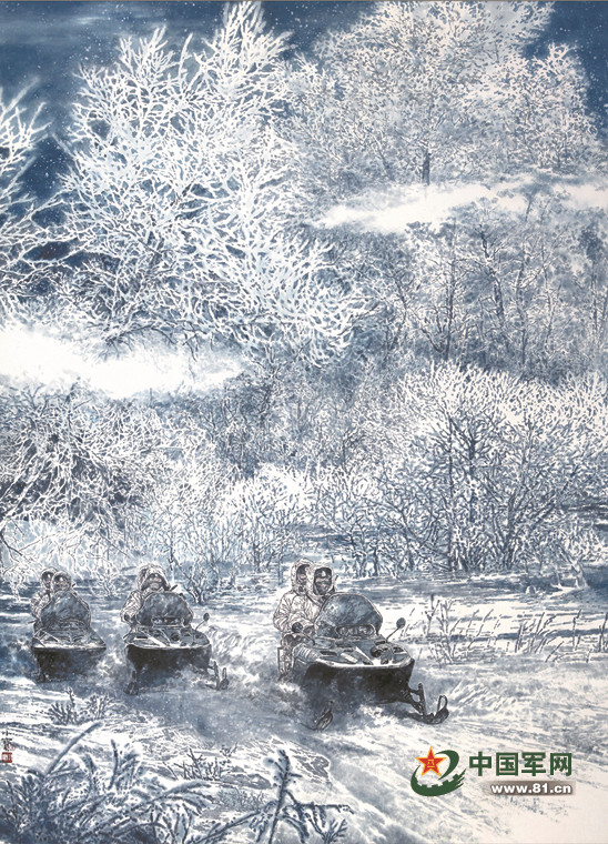 雪线巡逻守边陲(中国画) 仓小宝