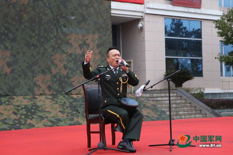 著名歌唱家张仰胜为战士们激情表演器乐演唱《我们正年轻》。