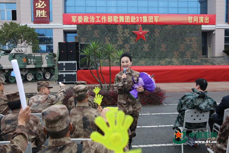 女高音歌唱家吴靖苹为战士们演唱歌曲《春色芳菲》等。