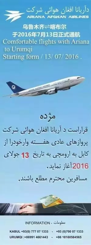 中阿直航:乌鲁木齐直飞喀布尔航线7月复航