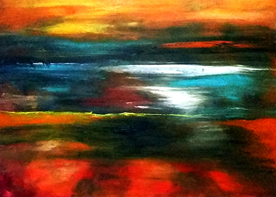大自然温馨火红的秋色,预示着生命绚烂多彩的秋天。尽管色彩和图像不发一言,却蕴藏与表露着画家太多的情感和思绪。这就是画家田迎人的抽象油画《生命的秋天》,它向我们激情澎拜、神采飞扬地诠释了人到中年的壮丽景象,以及秋天里的生命美丽迷人的收获。
