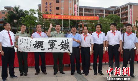 “铁军魂”120米书画长卷绘画活动在广东惠州正式启动。 颜新阳 摄