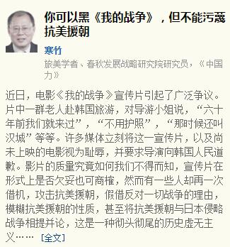但是,有些人借这部电影上映之机妄图否定保家卫国抗美援朝,这就该引起重视,也是我们绝对不能答应的。因为,几十年来中国的国家安全、中国人的尊严,以及我们今天的国际地位,是这场战争中的无数英烈用鲜血换来的。难道这点还有什么可以质疑的吗?